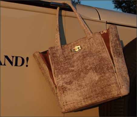 The handbag comes in a handmade fabric bag and a carton box with leather samples, accompanying certificate and guarantee as well as a bronze pendulum and a handful of pieces of amber and seashells.