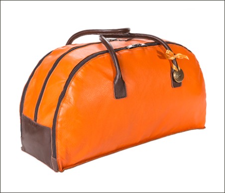 The weekender comes in a handmade fabric bag and a carton box with leather samples, accompanying certificate and guarantee as well as a bronze pendulum and a handful of pieces of amber and seashells.